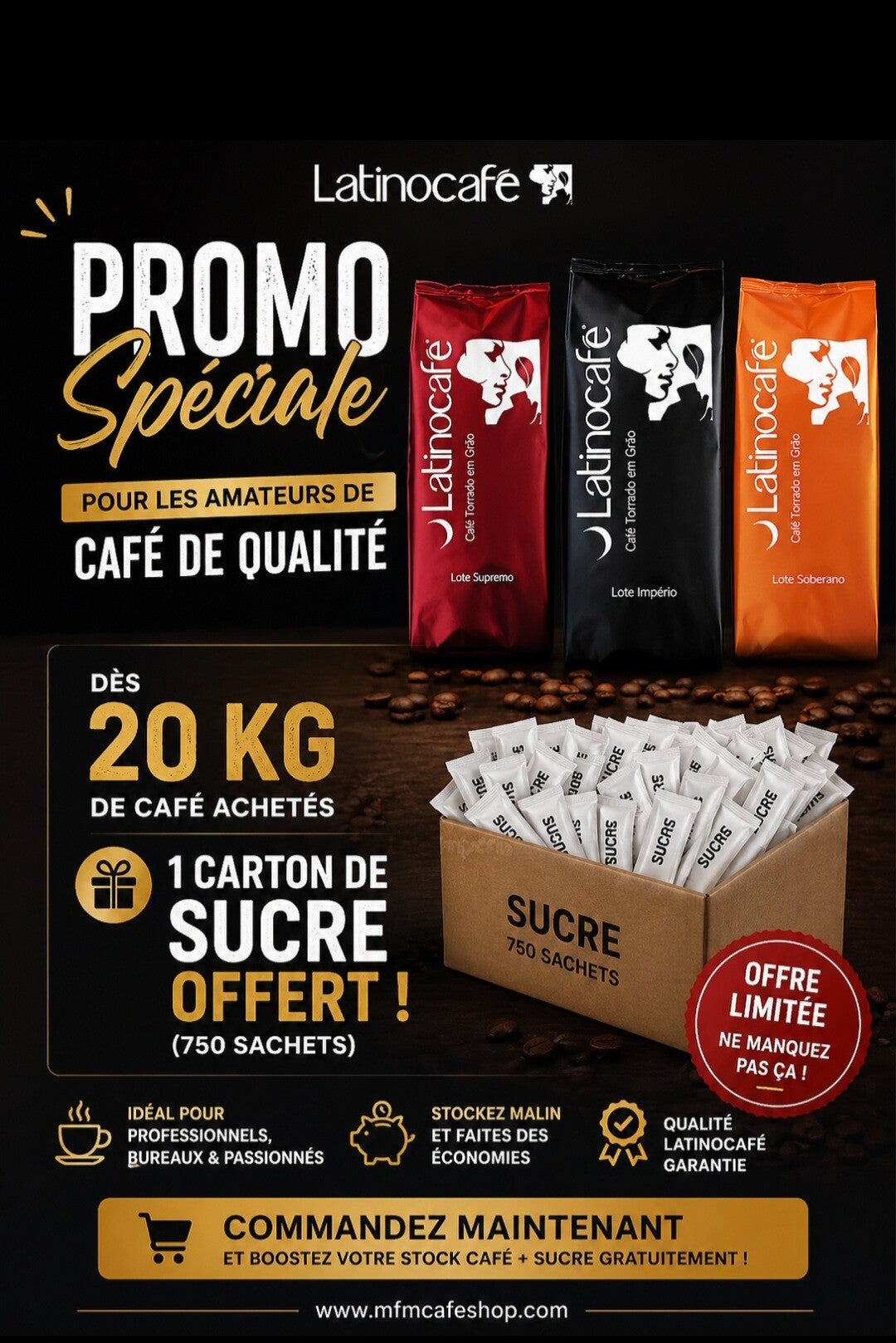 Que vous soyez un café, un restaurant ou une entreprise, cette promotion vous aide à optimiser vos coûts et à satisfaire vos clients avec du sucre de qualité, offert par MFM SHOP.